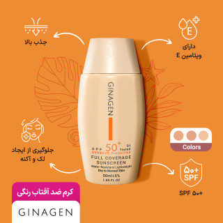 کرم ضد آفتاب رنگی 01ژیناژن مدل Full Coverage با spf 50 مناسب پوست معمولی و خشک حجم 50 میلی لیتر